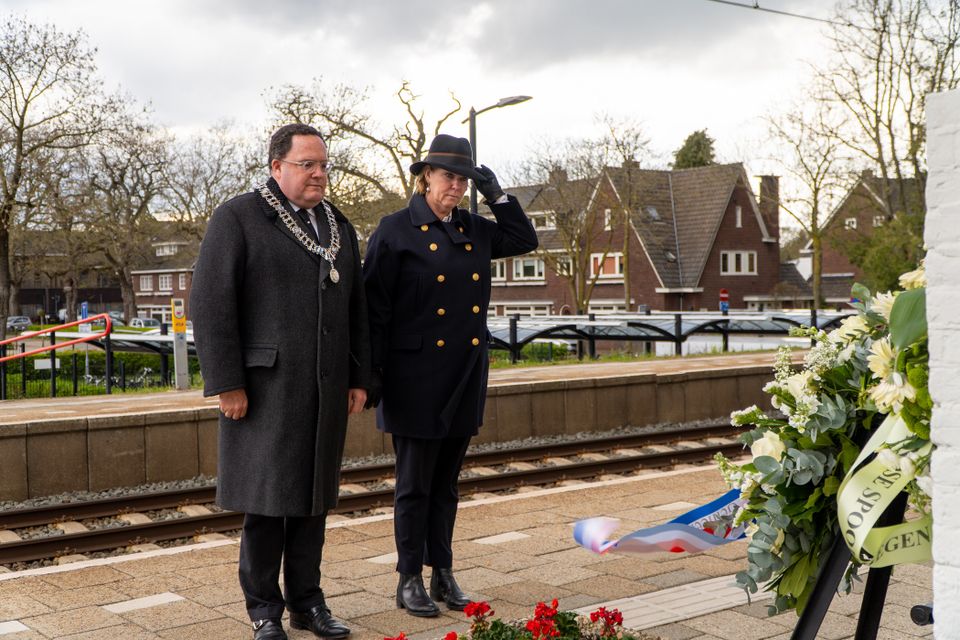 18.25 uur - Kranslegging bij het monument op het perron van het NS-station, vanwaar ruim 14.000 meest Joodse mannen en vrouwen met 1.800 kinderen zijn weggevoerd naar vernietigingskampen in Polen.