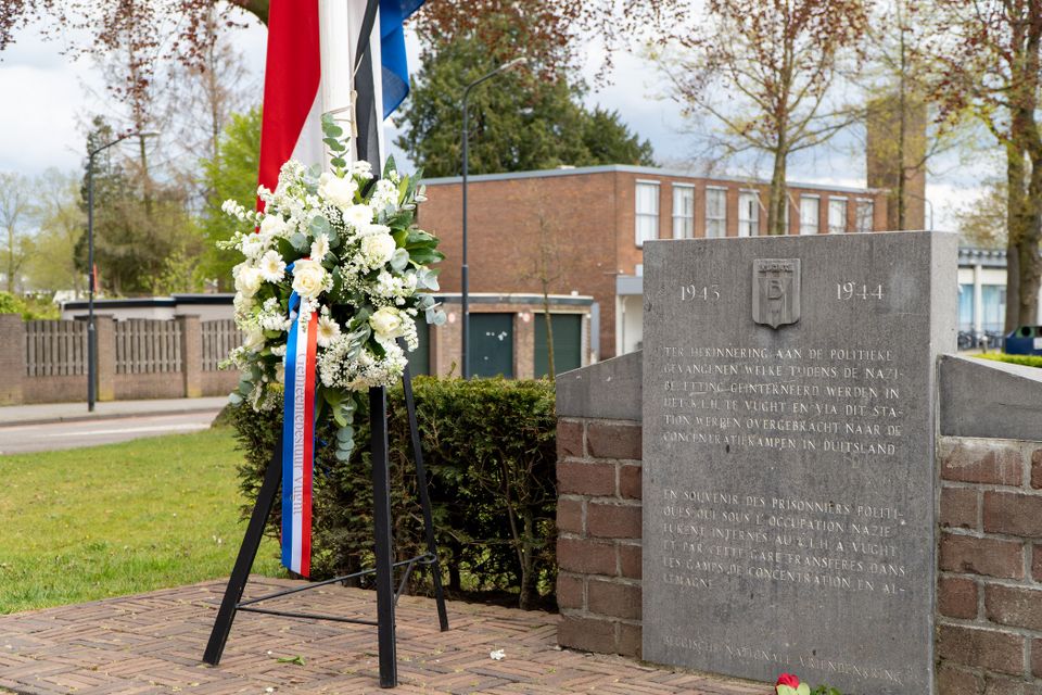 18.40 uur - Kranslegging bij het monument voor het NS-station, ter gedachtenis aan de politieke gevangenen uit België, die in Kamp Vught zijn omgebracht of van daaruit op transport zijn gesteld naar de concentratiekampen in Duitsland